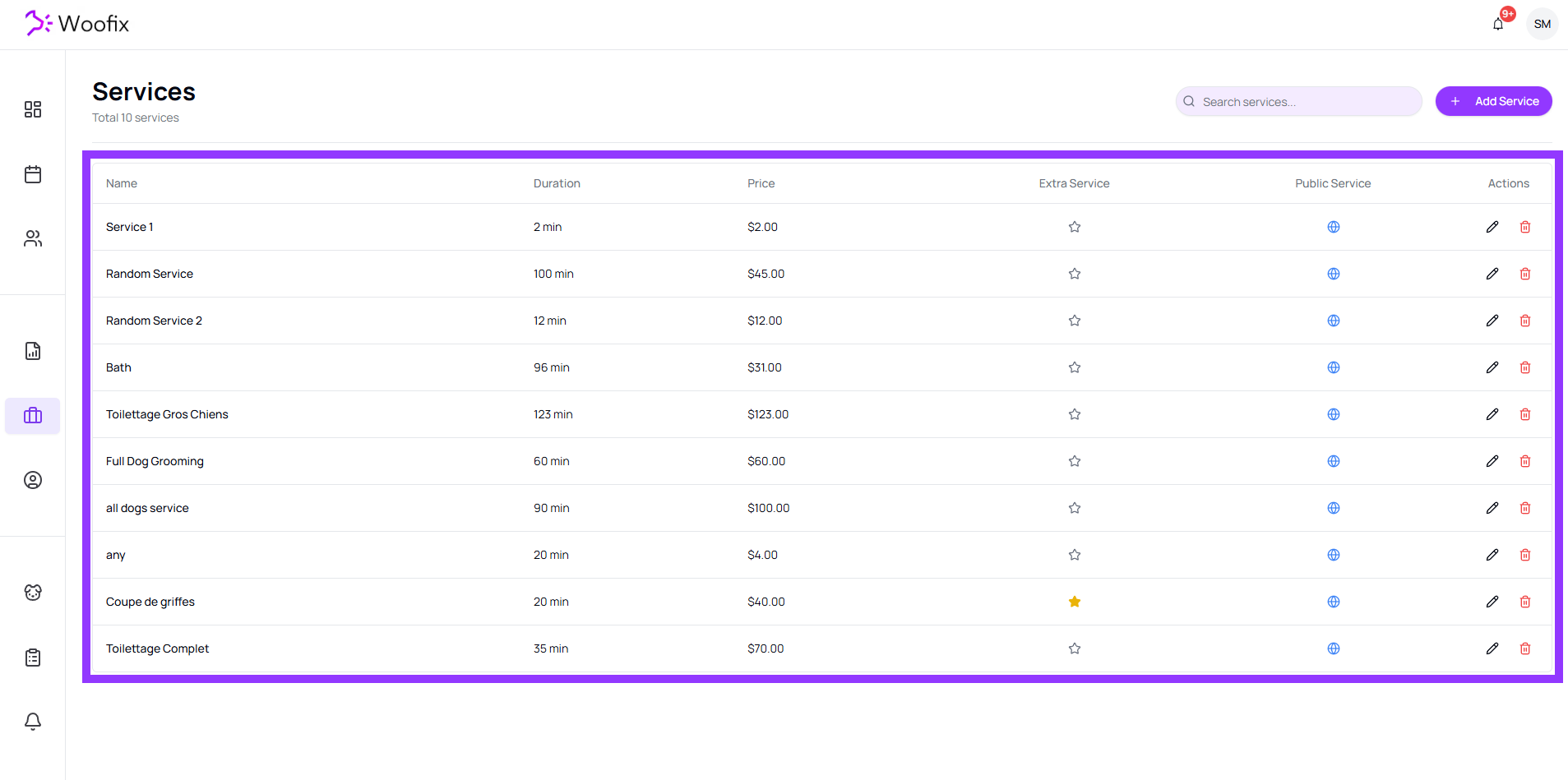 La section Services est le cœur de votre offre dans Woofix. C'est ici que vous configurez ce que vos clients peuvent réserver. Ce tutoriel vous explique comment créer, modifier et configurer correctement vos services pour qu'ils apparaissent dans l'application.